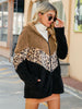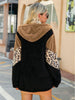 Long Sleeve Hooded Leopard Print Zipper Fleece Coat