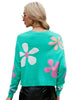 Long Sleeve Round Neck Flower Pullover Loose Sweater
