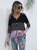 Loose V-Neck Long Sleeve Spliced Striped T-shirt