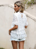 Lotus Leaf Short Sleeve Round Neck Lace Blouse