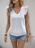 Lotus Leaf V-neck White Hollow Shirt