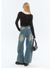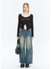 Low Collar Short Long Sleeve T-shirt top