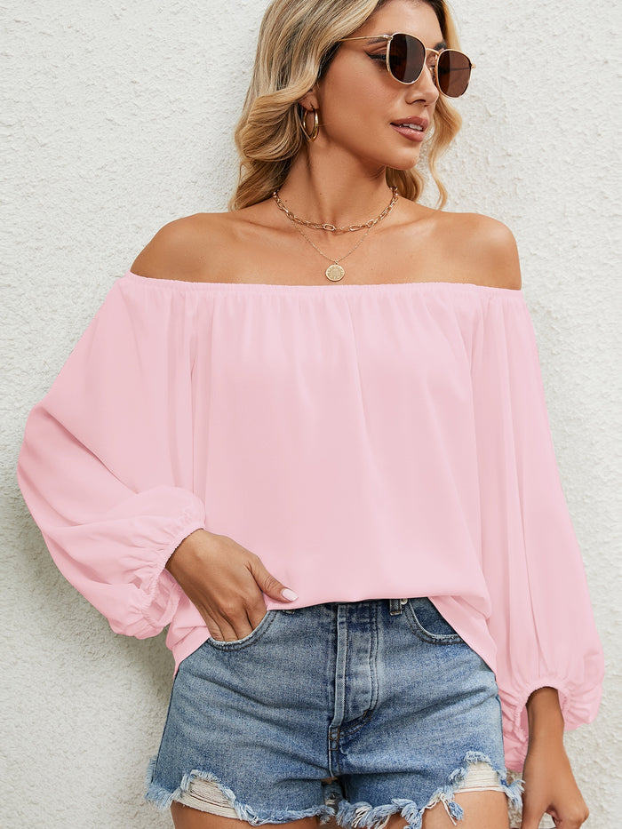 Off the Shoulder Solid Color Chiffon Top