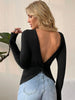 Open-back Round Neck Slim Long Sleeve T-shirt