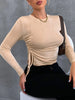 Pleated Slim Crewneck Long Sleeve T-shirt