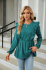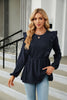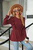 Pleated Spliced Round Neck Long Sleeve T-shirt