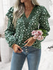 Printed Casual Lotus Leaf Sleeve Stitching Top