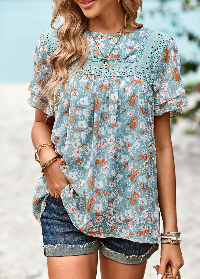 We guarantee you'll adore the Floral Print Sheer Sleeve Smocked Top! This fashionable top is crafted from lightweight, sheer gauzy fabric featuring an elegant white floral pattern. It boasts a chic surplice neckline and short sleeves, with a billowy bodice concluding in a smocked hem. Combine this top with a lace bralette for a perfect festival-inspired look!