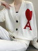 Red Heart Love Letter A Knitted Cardigan Long-Sleeved Sweater