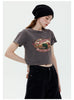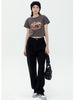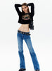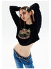 Retro Slim Short Round Neck Long Sleeve T-shirt