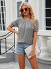 Round Neck Pleats Short Sleeves T-shirt