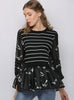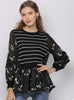Round Neck Stitching Long Sleeve Striped Printed Shirt