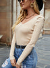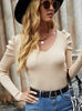 Slim-fit V-neck Bubble Sleeve Top