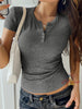 Slim V-neck Knitted Short-sleeved Shirt T-shirt