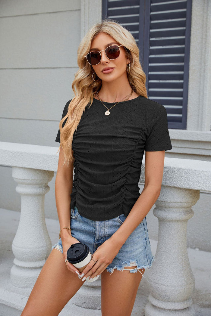 Solid Color Slim Pleated Short Sleeve T-shirt