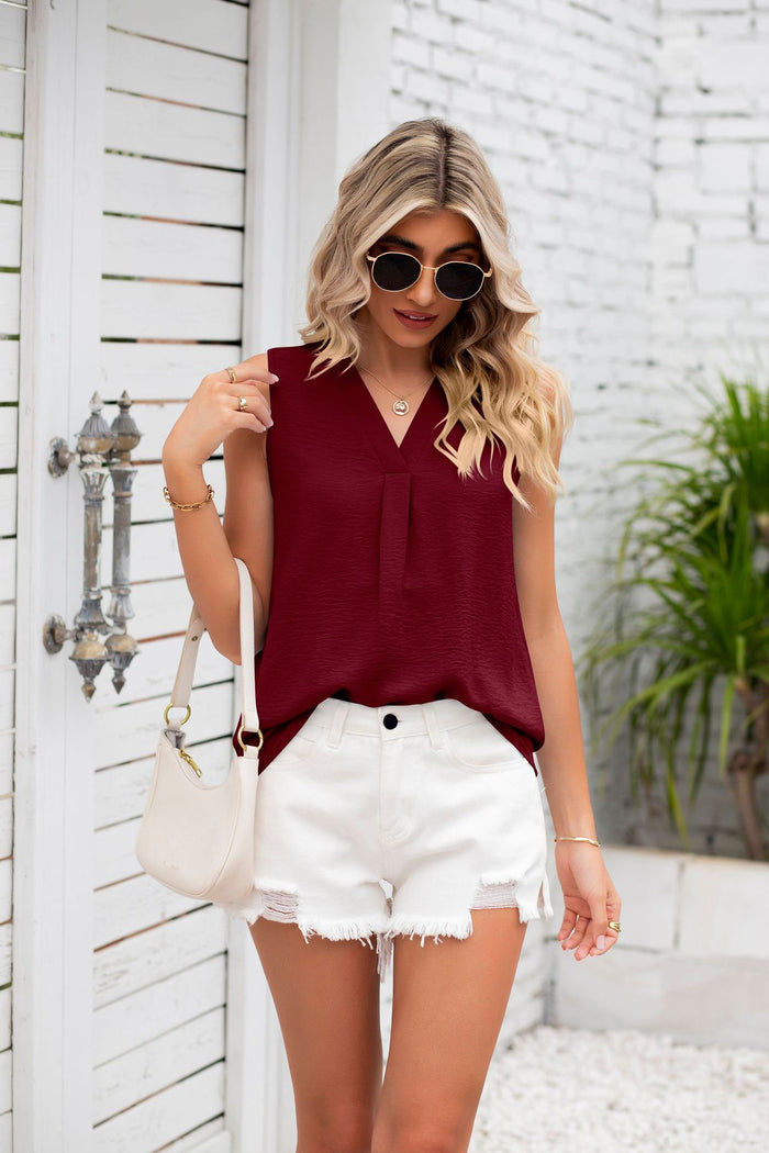 Solid Color V-neck Loose Chiffon Sleeveless Vest