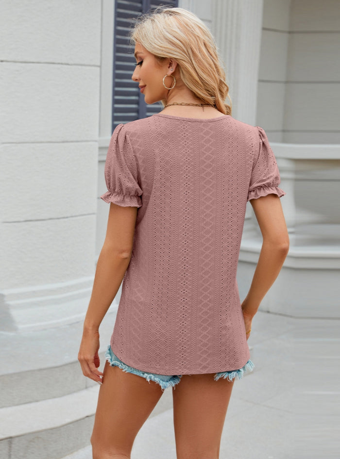 Solid Color V-neck Loose Short-sleeved T-shirt