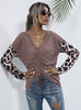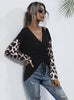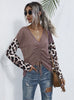 Spliced Leopard V-neck Pleated Long Sleeve T-shirt