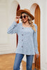 Square Neck Button Loose T-shirt