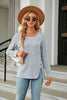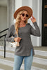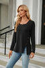 Square Neck Button Split Loose Long Sleeve T-shirt