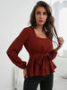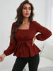 Square Neck Elastic Waist Ruffled Long Sleeve Shirt