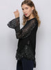 Star Printed Trumpet Sleeve Round Neck Shirt