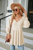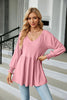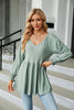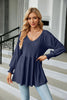 Stitching V-neck Jacquard Long-sleeved T-shirt