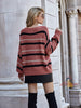 Striped Stitching Long Sleeve Round Neck Sweater