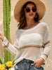 Thin Loose Round Neck Striped Hollow Long Sleeve Top