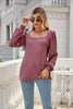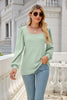 U-neck Pleated Bubble Sleeve Casual T-shirt