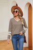 V-neck Contrast Stitching Long Sleeve T-shirt