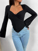 V-neck Flared Sleeve Irregular Knitted T-shirt