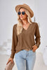 V-neck Jacquard Button Loose T-shirt