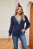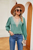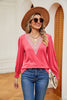 V-neck Lace Stitching Loose Long Sleeve T-shirt