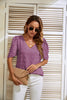 V-neck Puff Sleeve Wool Ball Chiffon Top