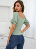 V-neck Slim Bubble Sleeve Short Sleeve T-shirt