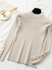 Women Thick Sweater Pullovers Long Sleeve Button O-neck