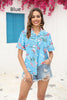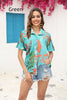 Wrinkled Short Sleeve Pleated Lapel Printed Shirt