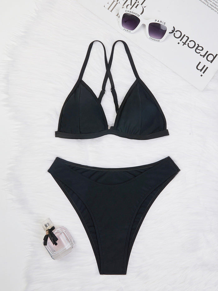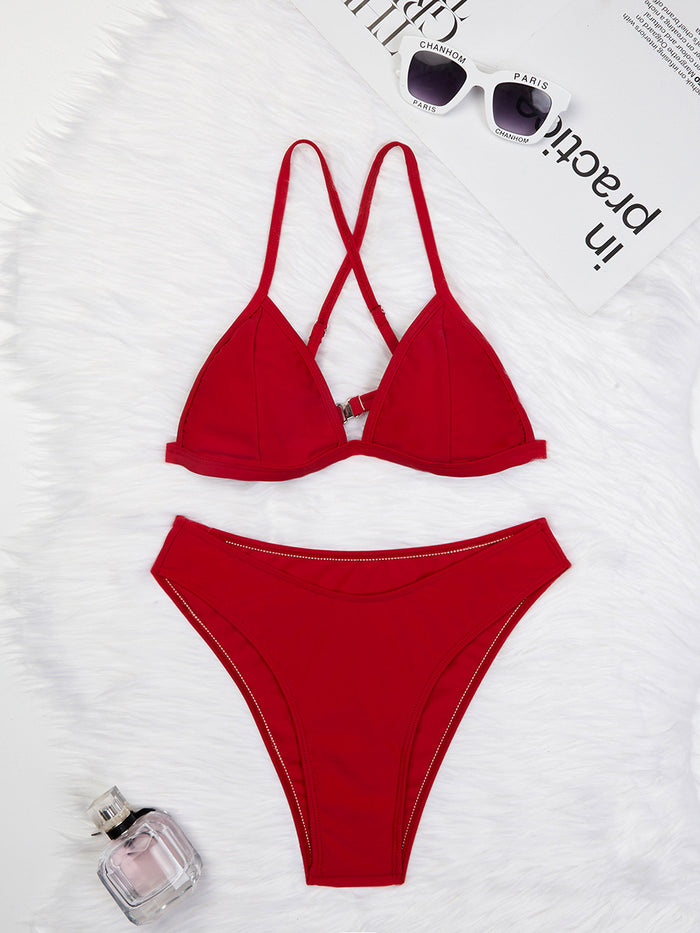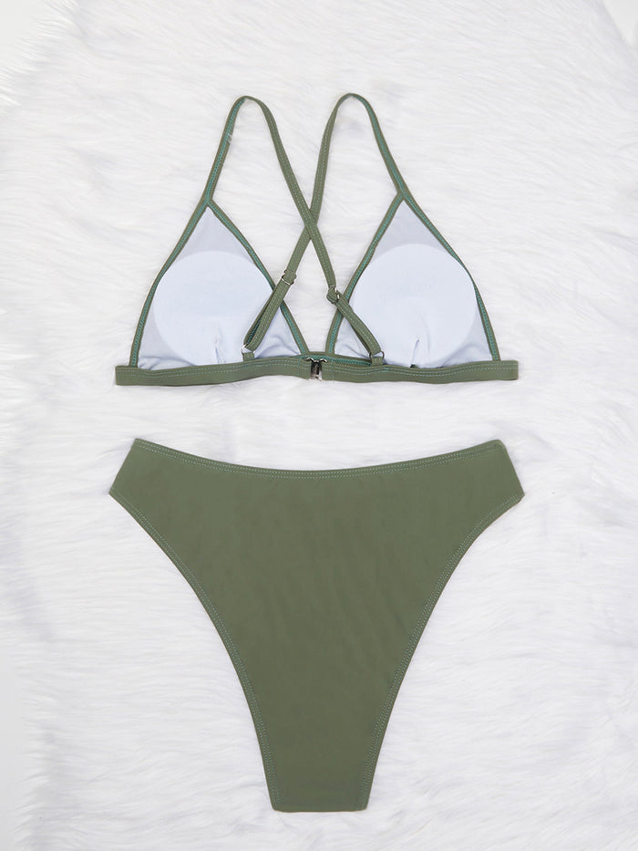Rhodonite hues meet sleek design in this stunning bikini set, perfect for the modern minimalist. The elegant olive green color is both timeless and versatile, making it a staple piece in any swimwear wardrobe. The triangle top features adjustable straps, allowing for a customized fit that ensures comfort and support throughout your beach day. The high-cut bottoms are designed to elongate the legs and accentuate your curves, offering a flattering silhouette that boosts your confidence. Made from premium-quality fabric, this bikini set is not only durable but also soft and smooth against the skin, providing maximum comfort. The simple yet chic design makes it easy to mix and match with other beachwear pieces, offering endless styling possibilities. Ideal for those who love a clean, sophisticated look, this bikini set is perfect for any sunny getaway. Embrace the effortless elegance and enjoy the summer vibes in this must-have swimwear piece.