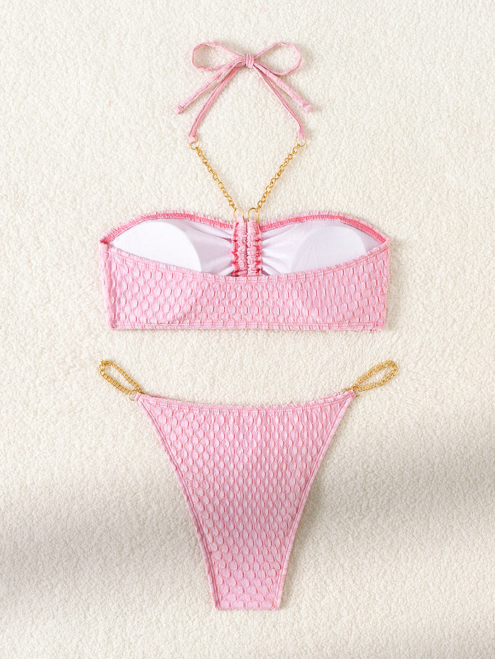 Sexy Tube Top Solid Metal Chain Bikini