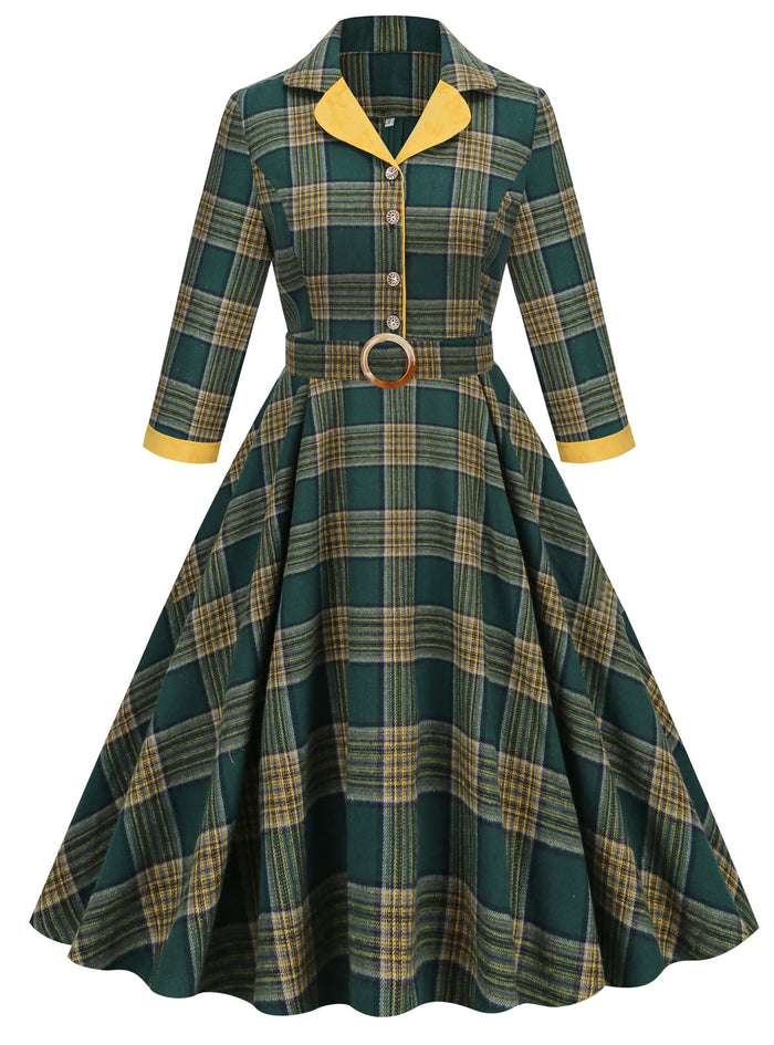 Hepburn Cropped Sleeve Contrast Retro Dress