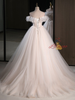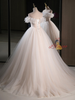 Beige Tulle Lace Spaghetti Straps Wedding Dress