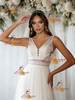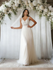 Beige White Tulle V-neck Wedding Dress