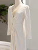 Ivory White Long Sleeve Pleats Wedding Dress