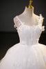 White Ball Gown Tulle Flower Wedding Dress