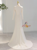 White Mermaid Long Sleeve Pleats Satin Wedding Dress