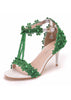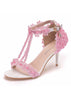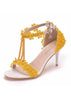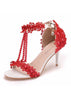 7 cm Thin Heel Beaded Lace Flower Wedding Shoes