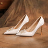 Satin Rhinestone White High Heels Shoes