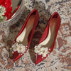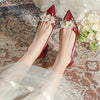 Satin Thick-heeled Pointed Pearl Wedding Shoes