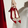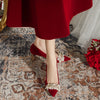 Thick-heeled Pointed Red Wedding Shoes